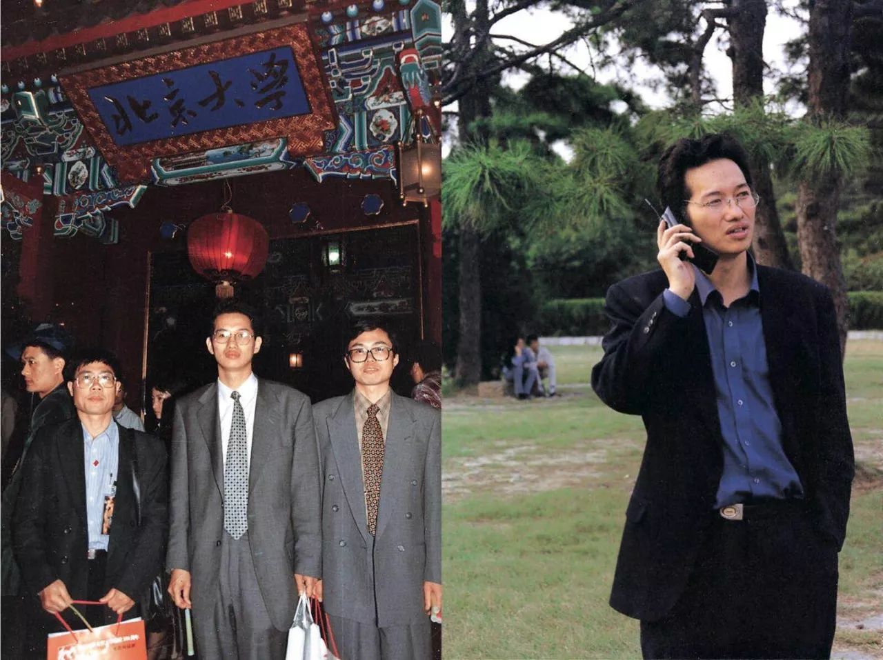 北大地球化学青涩的理科男(左图中),创业怎么苦也要用“大哥大”联系业务(右)。